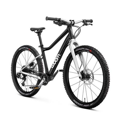 Alter:10 - 14 JahreGröße:142 - 167 cm (4.7 - 5.5″)Rahmengröße:26″Gewicht:12,8 kg (28,2 lbs)Superleichter RahmenDer ultraleichte Aluminiumrahmen hat eine geländegängige Geometrie mit langem Radstand und flachem Lenkwinkel für verbesserte Stabilität und ein geschmeidiges, reaktionsschnelles Handling. Zusätzliches Vertrauen gibt der Knick im Oberrohr, der es ermöglicht, in jeder Situation schnell abzusteigen.Robuste CarbongabelSuperleicht und superschick – die Carbongabel vereint maximale Stabilität mit minimalem Gewicht. Multidirektionale Carbonfasern sorgen für ausreichende Torsionssteifigkeit beim Lenken und Bremsen. Dieses Design vermittelt Vertrauen selbst bei den ruppigsten Abfahrten.Ergonomische KontaktpunkteDer altersgerechte MTB-Sattel und die ergonomisch profilierten Lenkergriffe sorgen für Komfort, während die robusten Plattformpedale mit Metallstiften den notwendigen Grip für den Geländeeinsatz bieten.Präzises SchaltenDer präzise und intuitive SRAM X5 Antrieb verfügt über neun Gänge und einen großen Übersetzungsbereich dank des 28-Zähne-Kettenrings vorne und einer 11-34 Kassette hinten. Der leicht zu bedienende Triggerschalter arbeitet reibungslos und zuverlässig, sodass Kinderhände leichtes Spiel haben.Zuverlässige ScheibenbremsenEinfach zu modulierende Scheibenbremsen werden mit kindgerechten, reichweitenverstellbaren Bremshebeln kombiniert, um maximale Bremskraft und Kontrolle in jeder Situation zu gewährleisten, einschließlich steiler Hänge und nasser Bedingungen.Grippy tubeless-ready MTB-ReifenHochwertige Schwalbe Mountainbike-Reifen vereinen geringen Rollwiderstand mit hervorragendem Grip und nachgewiesener Haltbarkeit. Mit der Tubeless Easy-Technologie und den tubeless-ready Felgen ist der Umstieg auf tubeless einfach und Sie profitieren von zusätzlichem Komfort und Grip.Leichter Flip-Flop VorbauDieser speziell aus geschmiedetem Aluminium entwickelte Vorbau vereint ultimative Steifigkeit mit geringstmöglichem Gewicht. Dank seines Flip-Flop-Designs besteht die Möglichkeit, die Höhe des Lenkers einfach durch Umdrehen zu erhöhen.