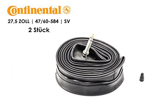 Kurzbeschreibung: Stückzahl: 2 Stück Marke: Continental Continental-Schlauch MTB 27,5 Zoll mit Sclaverandventil SV- Ventil inkl. Staubkappen -> Ventillänge 42mm weniger nachpumpen höhere Sicherheit geringere Pannenanfälligkeit ETRTO: 47/60-584 Farbe: schwarz Fahrradtyp: MTB Mountain Bike Passend zu Reifengröße: 27,5 Zoll