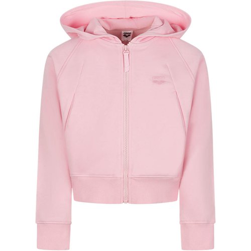 Einfarbige Kapuzenjacke für Mädchen; durchgehender Reißverschluss; seitliche Eingrifftaschen; Logodetail; Ärmelabschlüsse und Saum gerippt; leicht verkürzter Schnitt; Material 80% Baumwolle, 20% Polyester.