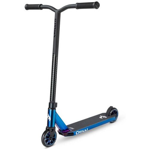 Der Chilli Rocky V2 und V3 sind das perfekte Einsteigermodell für junge Rider mit einem ausgeprägten Sinn für Design. Die robuste T-Bar aus verstärktem Stahl ist mit einem einzigartigen Honigwaben Pattern bestückt, das dem Scooter, zusammen mit dem neochromen Deck, einen besonders edlen Look verleiht. Das 50 cm lange und 11.5 cm breite Aluminiumdeck bietet genügend Platz für einen festen Stand. Darüber hinaus verfügt der Scooter über ein universales HIC Kompressionssystem und 110 mm Aluminium Core Wheels mit ABEC 9 Bearings.