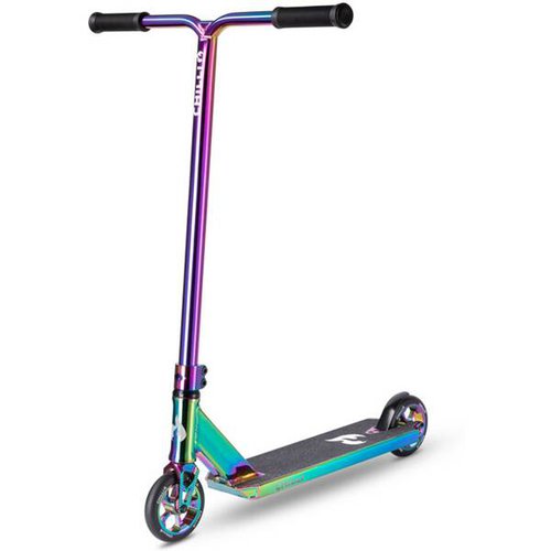 Der High-end Street Scooter für erfahrene Rider. Das 12.5 cm breite, kastenförmige Aluminiumdeck des Chilli Reaper Reloaded V2 eignet sich besonders gut zum Grinden. Hinten wurde es mit einer Einlagefüllung verstärkt und bietet ausserdem die Möglichkeit originale Chilli Pegs zu montieren. Die 120 mm Aluminium Core Wheels sorgen für optimalen Speed. Zudem ist der Scooter mit einer robusten T-Bar aus Chrom-Molybdän Stahl, einer schmalen Aluminium Fork und einem Pro Spider HIC Kompressionssystem ausgestattet. Der Reaper Reloaded V2 verfügt über viele raffinierte Designelemente, die dem Scooter das gewisse Extra verleihen. So zum Beispiel die zweifarbigen Handgrips, das Wassertransferdruck Design auf dem Deck, der gerillte Speichenansatz oder das eingefräste Fischnetz-Muster auf der Clamp und der Fork.