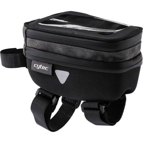 Die kompakte CYTEC Fahrradtasche aus EVA-Material wird auf dem Oberrohr des Lenkers befestigt und ermöglicht so einen schellen Zugriff. Sie besitzt ein praktisches Smartphonefenster zur einfachen Bedienung des Touchscreens sowie eine Durchführung für Kopfhörer. Ein wasserfester Reißverschluss sowie reflektierende Elemente für verbesserte Sichtbarkeit bei schlechten Lichtverhältnissen ergänzen die Top-Funktionalität der Rahmentasche.