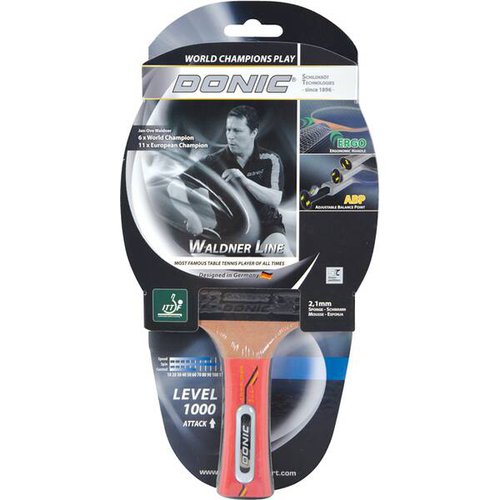 Der Donic-Schildkröt „Waldner 1000“ ist ein Schläger in absoluter Top-Qualität, der sowohl ambitionierte Freizeitspieler als auch leistungsorientierte Wettkampfspieler anspricht. Namensgebend dieser Schläger-Serie ist der weltweit bekannte Donic-Spieler und vielfache Weltmeister Jan-Ove Waldner, der als bester Spieler aller Zeiten in der Geschichte des Tischtennis-Sports gilt. Entsprechend bietet das Modell „Waldner 1000“ auch Spitzen-Qualität in jeder Hinsicht: eine hochwertige Ausstattung kombiniert mit kompromissloser Verarbeitungsqualität garantiert ein hohes Maß an Spielspaß und viele Erfolgsmomente an der TT-Platte über einen langen Zeitraum. Das speziell selektierte Holz wurde mit einer aus dem Wettkampfsport bekannten Technologie ergänzt: der sog. „ERGO-Handle“ sorgt für einen fließenden Übergang von Schlägerblatt zum Griff ohne Kanten und vermeidet somit störende Druckstellen auf dem Zeigefinger. Neben der optimalen Lage des Schlägers in der Hand bietet diese aufwändige
