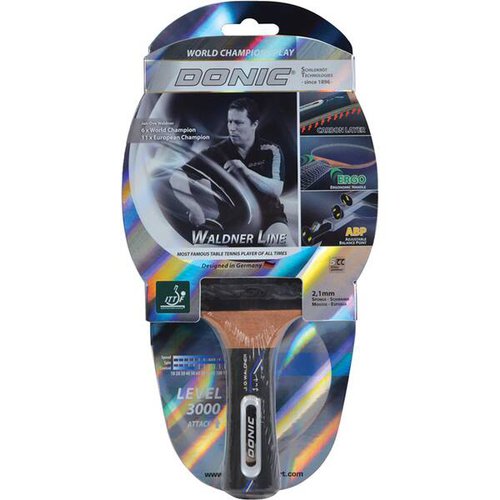 Der „Waldner 3000 Carbon“ von Donic-Schildkröt ist ein absoluter Top-Schläger der Waldner-Line, welche dem weltweit bekannten Donic-Spieler und vielfachen Weltmeister Jan-Ove Waldner gewidmet ist. Sowohl der ambitionierte Freizeitspieler als auch der leistungsorientierte Wettkampfspieler profitiert von der hochwertigen Ausstattung und der hohen Verarbeitungsqualität, ein hohes Maß an Spielspaß und viele Erfolgsmomente an der Tischtennis-Platte über einen langen Zeitraum sind mit diesem in Deutschland entwickelten Premium-Produkts garantiert. Das speziell selektierte Holz in absoluter Top-Qualität wurde zudem mit einer Carbonverstärkung ausgestattet, um mehr Power durch die optimierte Energiewiedergabe sowie Kontrolle durch die bessere Verwindungssteifigkeit beim Ballaufprall zu generieren. Eine aus dem Wettkampfsport adaptierte Technologie erhält nun auch Einzug bei den Freizeitschlägern: Donic-Schildkröt bietet mit dem sog. „ERGO-Handle“ einen fließenden Übergang von Schlägerblatt zum