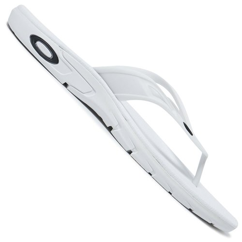 Oakley Ellipse Flip - Sandalen - White Der luftig-leichte Komfort der Ellipse Flip begleitet dich ab sofort an warmen Sommertagen zum nahegelegenen Badesee, wie auch in die Saunalandschaft zum entspannen. Der Fuß wird bei jedem Bewegungsablauf von einem weichen Fußbett begleitet und erfährt durch eine profilierte Außensohle, einen zuverlässigen Halt. Das leichte Rillenprofil der Gummisohle unterstützt dabei ein seitliches Ablaufen von Wasser, um auf feuchten Untergründen mit Stabilität überzeugen zu können. Produktdetails Herren-Sandalen Zehenriemen umschließt Fuß und ermöglicht Halt Gummierter Zehensteg Vorgeformtes EVA-Fußbett Gummi-Laufsohle für rutschsicheren Halt Rillenprofilierung optimiert Bewegungskomfort OAKLEY-Logodetails Material: Synthetik