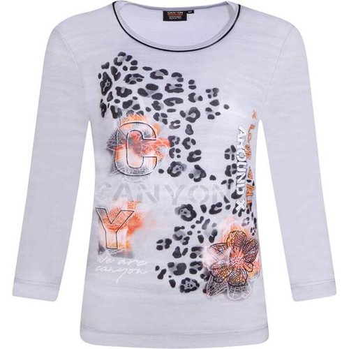 Das3/4 Arm T-Shirt von CANYON hat einen Rundhalsausschnitt, der mit einer Paspel umrandet ist und zeigt einen aufregenden platzierten Print mit dezentem Leoprint, Wording und Blumen.
