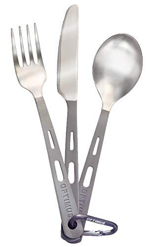 Leichtgewichtiges und robustes Besteck aus Reintitan\nMattierter Griff mit polierten Besteckkopf\nGewicht: 52g * Länge: Messer 180mm; Gabel 165mm; Löffel 165mm