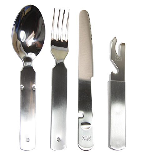 1 Set mit Messer, Gabel, Löffel und Dosen- / Flaschenöffner\naus deutschem Edelstahl gefertigt\nnatürlich rostfrei\nOriginal, erkennbar an der Prägung "OFW Bund"!\ninklusive Kunststoff-Hülle