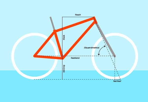 Fahrrad-Finder startenAm stärksten beeinflusst von: Steuerrohrwinkel, Nachlauf