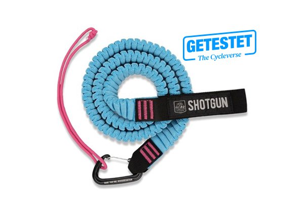 Damit die Familienradtour für alle zum Erlebnis wird, fährt man also am besten dort, wo es keine Anstiege gibt oder man überlegt sich etwas, damit jeder den Berg hochkommt. Auf dem Markt gibt es dafür verschiedene Systeme. Eines davon ist das Shotgun MTB Tow Rope. Im Prinzip ein Abschleppseil, mit dem man den Nachwuchs auf dem Rad ziehen kann.