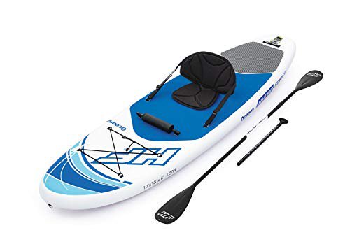 Artikelnummer: 65303\nGröße aufgeblasen: 305 x 84 x12 cm\nMaximale Personenanzahl: Ein Erwachsener\nMaximale Belastbarkeit: 110 kg\nDrop Stitch-Material bietet extreme Härte und Haltbarkeit\nAnti-Rutsch-Belag, Tragegriff in der Mitte, Abnehmbarer Sitz mit Rückenlehne, drei eingearbeitete Finnen, Elastische Schnur für zusätzliche Lagerung\nInklusive: 217 cm dreiteiliges Aluminium-Paddel (auch als Doppelpaddel nutzbar), Hudro-Force iSUP-Hochdruck-Doppelhubkolbenpumpe, Reparatur-Set, Transporttasche, Coil-Leash