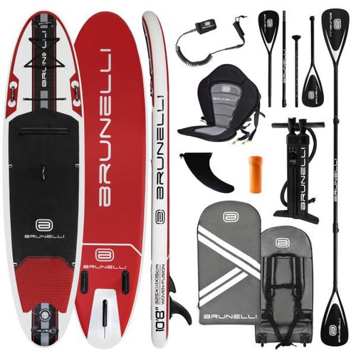 Next Generation ? erleben Sie die nächste Generation der Brunelli SUP Boards! Entdecken Sie mit dem Brunelli 10'8" die perfekte Kombination aus Leichtigkeit, Steifigkeit sowie Qualität und erleben das ultimative SUP-Erlebnis! Dank der innovativen Woven X Drop Stitch Konstruktion und der klebstofffreien heiß Laminierten PVC Double Layer Außenhülle ist dieses Board bis zu 20-25% leichter und 25-30% steifer als herkömmlich geklebte Boards. Die glatte Oberfläche sorgt für optimale Gleiteigenschaften und verhindert Falten und Blasen. Bei der Fusion-Technologie wird kein zusätzlicher Klebstoff verwendet, was es umweltfreundlicher und leichter macht. Mit einer Länge von 325 cm und einer Breite von 81 cm bietet es die perfekte Kombination aus Stabilität, Wendigkeit und Gleitfähigkeit bei gleichzeitig sehr leichtem Gewic...