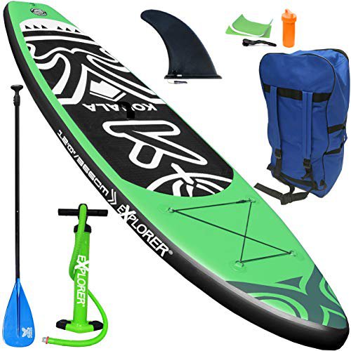 Maße: 366 x 81 x 15 cm (12.0‘ x 32“ x 6“)\nVolumen: 350 Liter / Tragkraft: max. 170 kg / Boardgewicht (ohne Zubehör): ca. 11 kg\nDas Board ist mit der neuesten DTEX-1100D-Dropstitch-Technologie ausgestattet (die meisten Wettbewerber in diesem Segment verwenden weniger steifes 1000D-Gewebe)und macht das Board dadurch sehr wendig, schnell, stabil und hält Dich sicher auf Kurs.\nSET mit: 3-teiliges verstellbares Alupaddel / Rucksack / Hochdruck-Double-Action-Handpumpe mit Manometer /\nD-Ring hinten z.B. für Leash (optional) oder zum Festmachen / Neoprenummantelter komfortabler Tragegriff /