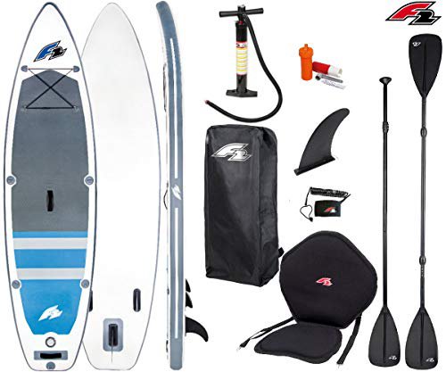 Das F2 AXXIS ist ein Allrounder im SUP-Bereich. Die neue Form vereint alle Allround-Feature, bewährt sich sehr gut als Familienboard und hat eine sehr große Nutzlast von 140kg.\nDas sehr leichte Boardgewicht (8,5kg) sorgt für schnellere Beschleunigung, leichte Drehbarkeit, Kontrolle und Sicherheit.\nDie 150mm Dicke Drop-Stitch Kern gibt eine top Steifigkeit, ohne die Fahrleistung zu beeinflussen\nGeeignete Personenzahl: 1-2/Volumen: 400 Liter/Tragegewicht: Bis zu 140 kg/Größe: (L/B/H in cm): 350 x 83 x 15/Gewicht(ohne Paddel): 8,5 kg\nSehr hochwertige Verarbeitung zum Top Preis- Leistungsverhältnis für riesen Spass auf dem Wasser!