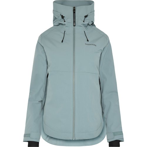 Isolierte Damen-Hardshell mit extra hohem Kragen und verlängertem Rücken bei der man trotz viel Style nicht auf Funktion verzichten muss