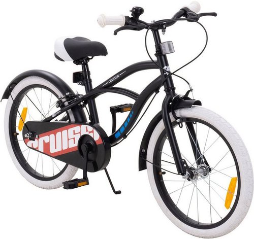 Actionbikes Motors Kinderfahrrad Kinder Fahrrad Cruiser 18 Zoll - ab 5 Jahre, 1 Gang, ohne Schaltung, (Trapez-Rahmen, Caliper Bremsen, max. Zuladung 35 kg, schwarz / weiß, 1-tlg., Klingel, Kettenschutz, Reflektoren, Katzenaugen, Fahrradständer), höhenverstellbares Bike Jungen Mädchen Kinderrad ab 110 cm |