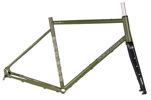 Fyxation Quiver X Rahmenset ist ein robustes und vielseitiges Rahmenkit für Fahrräder. Das Set besteht aus Fyxation Köcher 4130 cr-mo und Fyxation Sparta Allroad Carbongabel, die für jede Art von Fahrradabenteuer geeignet sind. Der Rahmen hat eine 12 mm Steckachse, ein britisches Tretlager und Räder, die bis zu 650x47c oder 700x42c ohne Kotflügel aufnehmen können. Der Rahmen kann Scheibenbremsen mit einem Durchmesser von bis zu 160 mm aufnehmen und hat eine flach montierte Scheibe und Doppelpost-Routing. Es gibt auch Zahnstangen- und Kotflügelhalterungen für zusätzliche Funktionalität. Mit einem Gewicht von ca. 3,28 kg ist dies eine großartige Option für jeden Radfahrer, der auf der Suche nach einem Rahmenkit für Abenteuerfahrten ist.Der Rahmen ist in frischem Grün erhältlich und hat ein integriertes Steuersatzdesign, das nicht im Lieferumfang enthalten ist. Der Fyxation Quiver X Rahmenset hat eine Sattelstützengröße von 27,2 mm und ist perfekt für Fahrer geeignet, die nach Agilität und Wendigkeit suchen, wenn sie in unwegsamem Gelände unterwegs sind. Das Rahmenset wurde für eine einfache Montage und eine robuste Konstruktion entwickelt, um ihre Haltbarkeit und Langlebigkeit unter allen Bedingungen zu gewährleisten.Insgesamt ist Fyxation Quiver X Rahmenset die perfekte Wahl für Abenteuerlustige Radfahrer, die das Beste aus ihrem Fahrrad herausholen möchten. Dieses Rahmenkit bietet Profis und Hobbyradfahrern gleichermaßen eine großartige Option für Abenteuerfahrten und alltägliche Nutzung. Also, worauf wartest du noch? Holen Sie sich noch heute Ihr Fyxation Quiver X Rahmenset!