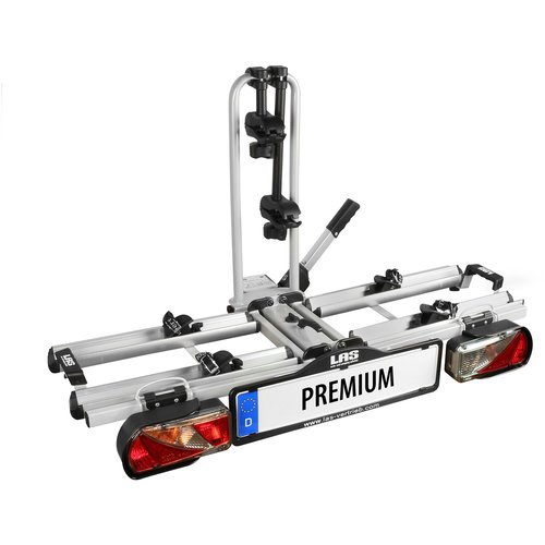 Der Eufab Fahrradkupplungsträger Premium sorgt für einen sicheren Transport Ihrer Fahrräder und überzeugt durch seine umfassende Ausstattung. Der Fahrradträger lässt sich dabei beliebig auf jedem Fahrzeug mit einer Anhängerkupplung montieren. Platzsparende Unterbringung des Heckträgers Der Schnellverschluss sorgt für eine unkomplizierte und schnelle Montage. Wenn Sie den Träger für eine Fahrt nicht benötigen, lässt sich der Kupplungsträger leicht abmontieren. Anschließend lässt sich der Fahrradträger zusammenfalten und kann in der Aufbewahrungstasche (im Lieferumfang enthalten) platzsparend und geschützt verstaut werden. Praktischer Zugang zum Kofferraum Der Fahrradträger Premium verfügt über einen Abklappmechanismus. Durch das Abklappen haben Sie weiterhin Zugang zum Kofferraum, selbst unter voll ausgelasteter Fahrradbeladung. Ausgenommen sind große Kofferraumklappen wie z. B. beim VW T5, T6 und Vans. Für diese Fahrzeuge wird der Eufab Kupplungsträger Premium II Plus empfohlen. Der Fahrradträger wird komplett vormontiert geliefert, sodass der Träger schnell einsatzbereit ist. Diebstahlschutz für hohe Sicherheit Mit einem Eigengewicht von 18 kg ist der Fahrradträger ideal für den sicheren Transport von bis zu zwei Fahrrädern auf der Anhängerkupplung. Der abnehmbare Rahmenhalter mit Haltegurten sorgt für einen festen Halt. Zudem ist der Rahmenhalter abschließbar, wodurch Sie sich auch bei einer kleinen Rast keine Sorgen um Ihre Fahrräder machen müssen. Für E-Bikes geeignet Der Kupplungsträger eignet sich für fast alle Fahrräder, auch für E-Bikes oder Oversize- und Y-Rahmen. Die Trägernutzlast von 60 kg ist dabei einzuhalten. Außerdem besitzt der Heckträger eine EG-BE, welche eine europäische Betriebserlaubnis ist und somit kein Eintrag in die Kfz-Papiere erforderlich ist. Dank des 13-poligen Anschlusspins können Sie mühelos sämtliche Leitungen an dem Auto-Fahrradträger anschließen und eine sichere Fahrt genießen. Eufab - Fahrradträger-Systeme der Komfortklasse Seit über 20 Jahren kümmert sich Eufab um einen komfortablen Fahrradtransport in Deutschland. Ein umfassendes Produktsortiment bietet einen sicheren Transport von Fahrrädern auf der Anhängerkupplung sowie dem Autodach. Die Neu- und Weiterentwicklung der Produkte hinsichtlich Design, Qualität und Sicherheit machen Eufab zu einer trendorientierten Marke. Technische Details Anwendung: Auf der Anhängerkupplung Anzahl der Fahrräder: 2 Schnellverschluss: Ja Abklappmechanismus: Ja Diebstahlsicherung des Trägers: Abschließbar Befestigung der Fahrräder: Abnehm- und abschließbare Rahmenhalter und Haltegurte Abschließbare Rahmenhalter: Ja Beleuchtungsanschluss: 13-poliger Stecker Material: Aluminium, Stahl, Kunststoff Eigengewicht: 18 kg Nutzlast: Max. 60 kg max. Schienenlast Schiene 1:30 kg, max. Schienenlast Schiene 2: 30 kg