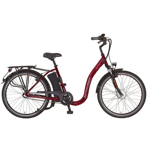 Das DIDI THURAU E-Bike, Citybike, 3-Gang, 26″, RH: 46 cm, 374 W, 36 V, max. Reichweite: 60 km wird von einem 350 W angetrieben.