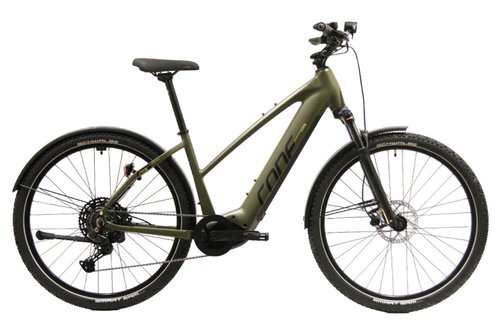Das Cone eCross IN 3.0 Trapez 750Wh Grün/Schwarz 2024 44 cm ist für Touren auf gemischten Untergründen vorgesehen.