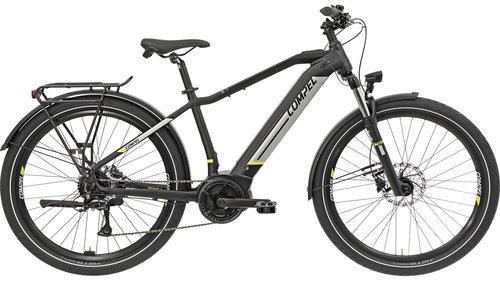 Warum dieses E-Bike die perfekte Wahl ist: Das COMPEL HTS 8.7 HYBRID E-Trekkingbike mit Federgabel bietet starke Unterstützung und hohe Zuverlässigkeit – ideal für den Alltag und längere Touren. Dynamischer Motor: Der Bosch Performance Line Mittelmotor sorgt für eine gleichmäßige und kraftvolle Unterstützung auf jeder Strecke. Leistungsstarker Akku: Der Bosch InTube 500 Wh Akku ermöglicht eine gute Reichweite, ideal für längere Fahrten ohne häufiges Nachladen. 8-Gang Schaltung: Die Shimano Acera 8-Gang Kettenschaltung bietet zuverlässiges Schalten und einfache Anpassung an unterschiedliche Gelände. Starke Bremsen: Hydraulische Shimano Scheibenbremsen garantieren sichere Bremskraft und Kontrolle bei allen Wetterbedingungen. 27,5-Zoll-Reifen: Die Bereifung sorgt für Stabilität und ein angenehmes Fahrgefühl. Robuster Diamant-Rahmen: sorgt für ein stabiles und sportliches Fahrerlebnis. Dieses E-Trekkingbike ist eine ideale Wahl für alle, die eine Kombination aus Leistung und Zuverlässigkeit suchen – perfekt für den täglichen Einsatz und entspannte Touren.