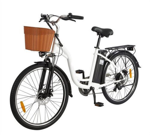 Fangqi E-Bike 26 Zoll Fahrrad Elektro mit 6 Gang Shimano Kettenschaltung, SHIMANO, Kettenschaltung, 250W Heckmotor, (12.5Ah 36V Abnehmbarer Akku,Sitzhöhe Verstellbar, City Bike mit Korb für Erwachsene City Pendler), Citybike mit Korb,Damen Ebike |