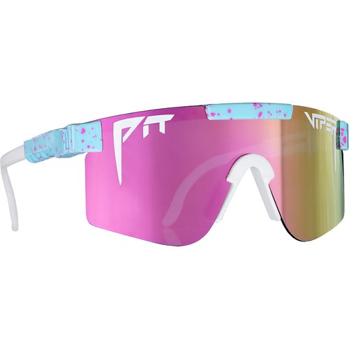 Dunkel blau getönte, polarisierte Sportbrille mit variablen Bügeln und großem Sichtfeld im Miami Vice Look
