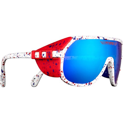 Sportbrille mit großem Sichtfeld und verspiegelten Gläsern in poppigen Neon Windsurf Design der 90iger