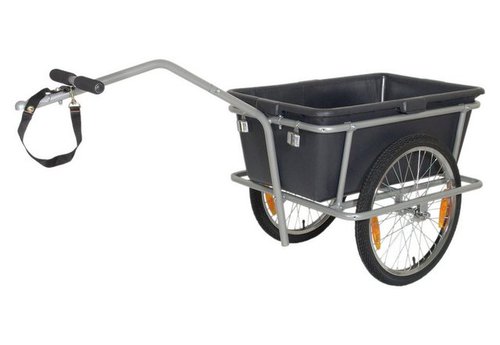 Blue Bird Fahrrad Lastenanhänger, 20 Zoll, schwarz-grau, »Big Cargo Trailer«. Dieser kompakte Lastenanhänger kann entweder als Anhänger am Fahrrad oder als Handwagen genutzt werden. Die stabile Kunststoffwanne ist herausnehmbar und hat ein Fassungsvermögen von 45 l. Bei der Nutzung am Fahrrad darf das maximale Gesamtgewicht 40 kg, bei der Nutzung als Handwagen 100 kg betragen. Details: Rahmen: stabile, pulverbeschichtete Stahlrohrbasis. Herausnehmbare stabile Kunststoffwanne, ca. 45 l Volumen. Eigengewicht: ca. 7,5 kg. Max. Gesamtgewicht: als Handwagen ca. 100 kg, als Fahrradanhänger nur 40 kg lt. StVZO. Zerlegbare Deichsel mit weichen Handgriffen. Inkl. Kupplung. Stützfuß. 20 Zoll kugelgelagerte Laufräder mit Luftbereifung und Speichenreflektoren. Heckreflektor . Abmessungen Wagen: (L/B/H) 77,3/60,3/60,5 cm . Abmessungen Box innen: (L/B/H) 73,5/42,5/29,5 cm . Länge mit Deichsel: 156 cm. Deichsel-Durchmesser: 25,5 mm. Durch Ergänzung eines geprüften Rücklichtes wird der Anhänger der StVZO entsprechen. Farbe: schwarz-grau. Durch Ergänzung einer geprüften Beleuchtung wird der Anhänger StVZO-kompatibel. Laufräder und Deichsel müssen bei Lieferung noch angebaut werden.