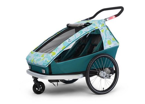 Der Croozer Kid Vaaya 2 mit Sonnenschutz in der einmaligen 30 Jahre Editionmit Zubehör ab 1. Lebensmonat nutzbar bis 5 Jahren Der Kid Vaaya 2 Kinderfahrradanhänger von CROOZERIch bin der neue CROOZER Kid Vaaya 2 in der Limited Edition ",30 Years Around the World", und das Nachfolgemodell des bewährten Kinderfahrradanhängers Kid for 2 von CROOZER. Einen gratis Sonnenschutz in der passenden Farbe bringe ich Euch in diesem Set gleich mit. Mit mir könnt Ihr Eure Kinder (zusätzlich Zubehör nötig) schon ab Geburt mit dem Fahrrad transportieren. Meine besonders ergonomischen Einzelsitze sind aus atmungsaktivem climatex Material hergestellt und bietet Euren Kindern immer optimalen Sitzkomfort. Damit Ihr auch in unwegsamen Gelände bequem fahren könnt, besitze ich eine AirPad Federung, die die Stöße von Euren Kindern wegleitet. Mein integriertes Sensor-Licht, sorgt bei Dämmerung dafür, dass man Euch auf der Straße gut sieht. Ich bin Dank Click&,Crooz super leicht an Eurem Fahrrad zu befestigen. EigenschaftenMit Zubehör ab Geburt nutzbarNEU: climatex® Sitz: 100% recyclingfähiges High-Tech Material für optimale Temperaturregulierung – wärmt im Winter, kühlt im Sommer!Croozer AirPad® Federung: Funktioniert gewichtsunabhängig und erfordert weder Einstellungen noch WartungenCroozer AirPad®: Federung und Dämpfung in Einem, für eine besonders sanfte Fahrt – auch schon für die AllerkleinstenSensor-Licht: Integriert in den Schiebebügel, schaltet sich bei Bewegung &, Dämmerung automatisch einUnd der Akku ist sogar wieder aufladbar!Click &, Crooz Bedienung zum leichten Wechsel der Sets2in1: Fahrradanhänger- &, Buggy-Set sind im Paket enthalten, das passende Jogger-Set ist als Zubehör erhältlichDesigned, entwickelt und getestet inhouse beim Familienunternehmen Croozer in KölnErgonomische Sitze aus nachhaltigem, 100% recyclingfähigem climatex® MaterialSicherheitsfahrgastzelle mit Überroll- und SeitenaufprallschutzBesonders hohe Kippstabilität durch breiten Radstand und tiefen SchwerpunktSensor-Licht, reflektierende Höhen- und Breitenmarkierung für beste Sichtbarkeit5-Punkt-SicherheitsgurteRegelmäßig von unabhängigen Prüflaboren, Institutionen und Redaktionen getestetAlle Materialien werden über gesetzliche Anforderungen hinaus auf chemische Unbedenklichkeit geprüftGratis: Sonnenschutz Colourful Journey - stufenlos verstellbarLieferumfang Zweisitzer (Limited edition: 30 years around the world) mit Croozer AirPad® Federung und climatex® Sitzen Fahrrad-Set (Deichsel, Sicherheitswimpel, 1 Kupplung) Buggy-Set (Buggyrad) Integriertes Sensor-Licht Sonnenschutz Colourful Journey Schlüsselset für das Deichselschloss 2in1-Wetterverdeck Kopfpolster Höhenverstellbarer Schiebebügel Gratis: Sonnenschutz Colourful Journey - stufenlos verstellbar SicherDie extrem stabile (1) Rohr- und Rahmenkonstruktion aus Stahl- und Aluminium bieten einen stabilen Schutzraum für Euer Kind. Der patentierte (2) Superbar sorgt für zusätzliche 5 cm Abstand zu den Rädern, so dass Euer Kind im Seiten und Rückenbereich noch besser geschützte ist, im Falle eines seitlichen oder hinteren Aufpralls. Im vorderen Bereich befindet sich ein (4) Stoßfänger als Aufprallschutz. Die (3) Querrohre sorgen für mehr Stetigkeit. Dank des tiefen Schwerpunktes und des breiten (5) Randstandes besitzt der Croozer eine erhöhte Kippsicherheit. Der (6) Schieber, der auch während der Fahrt immer eingesteckt sein muss, dient als zusätzlicher Überrollschutz. Von Geburt an unterwegsDer Kid Vaaya ist das Premiummodell unter den CROOZER Kids. Er bietet Euch das Top-Gesamtpaket – und Ihr könnt zwischen zwei Farbmodellen wählen! Im CROOZER können Eure Kinder ab dem ersten Jahr bis ca. 5 Jahren mitfahren. Mit dem gemütlichen Babysitz (Zubehör) sind sogar schon die Kleinsten ab dem ersten Monat sicher mit an Bord! Der Stoßfänger ermöglicht die einfache Diebstahlsicherung per Fahrradschloss. Alle Fensterfolien weisen einen UV-Schutzfaktor von UPF 80+, auf. Kompakt eingepackt: Mit wenigen Handgriffen faltet Ihr Euren CROOZER auf ein handliches Maß zusammen und könnt ihn überallhin mitnehmen! ProduktmerkmaleSitzplätze: 2max. Schulterbreite: 56 cmKopfhöhe: 62 cmL x B x H (ohne Griff): 110 cm x 80 cm x 94 cmL x B x H gefaltet (ohne Griff und Räder): 106 cm x 79 cm x 29 cmGewicht (Basis mit Griff und Rädern): 18 kgmax. Zuladung: 35 kgLaufräder: 20", Speichenlaufräder (silber) mit Reflektoren
