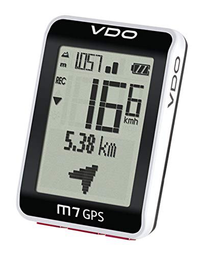 Die gesamten Geschwindigkeits- und Streckenfunktionen werden mittels GPS ermittelt. Somit wird keine weitere Sensorik am Rad benötigt. Mit einem einzigen Tastendruck auf START beginnt man die Aufzeichnung.\nDie Höhenänderungen werden barometrisch genau gemessen. Das einfache Kalibrieren der Starthöhe kann durch die ermittelte GPS-Höhe, sehr schnell, einfach und direkt erfolgen.\nMittels USB-Anschluss kann der M7 GPS ganz einfach an den PC angeschlossen und die Daten der gefahrenen Tour übertragen werden. Die Daten werden in dem gängigen .fit-Format übertragen und können damit sowohl in der VDO-Software ausgewertet oder auf sozialen Plattformen wie facebook, Strava und Co. geteilt werden.\nDank der GPS-Technologie kann der M7 GPS die Distanz (Luftlinie) zum Startpunkt der Tour ermitteln. Neben der Entfernung in km zeigt ein Pfeil im Display zusätzlich die Richtung an. So weiß man immer, ob man sich vom Startpunkt weg- oder hinbewegt.\nDas Display des M7 GPS teilt sich in drei Bereiche auf. Im oberen Bereich befinden sich Informationen zur aktuellen Höhe, dem GPS-Empfang und dem Akku-Zustand. Im Bereich 2 wird mit großen und gut lesbaren Ziffern die aktuelle Geschwindigkeit angezeigt. Im unteren Bereich können Daten zur aktuellen Tour eingesehen werden. Ebenso ist hier das Menü untergebracht.