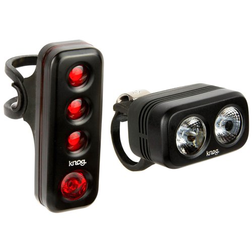 The Blinder Road twinpack are Hi-powered bike lights specifically designed for road cycling. Delivering a colossal 250 lumen beam of light at the front and 70 lumens at the rear, they're the first Blinder lights of their kind to give riders 100% visibility and freedom at night, all from a super-compact, super-light, USB rechargeable, waterproof, integrated silicone package. Specifications: Dimensions: Front: 53x56x82mm, Rear: 27x75x35mm Weight: Front: 75g, Rear:75g Materials: UV-resistant industrial grade silicone rubber body and strap. Polycarbonate housing. PMMA Lens. Anodised aluminium heat sink. Anodised aluminium fascia and solid stainless steel MIM latch. LEDs: Front: 2 x Lumileds Luxeon Z-ES, Rear: 1 x CREE XB-D, 3 x Super bright LEDs Battery: Integrated rechargeable Lithium Polymer. Peak brightness: Front: 250 Lumens, Rear: 70 Lumens Front Light Modes: Total of 8 light modes: Narrow, High, Dual Beam & Flash in both High and Low. Rear Light Modes: Total of 5 Light modes: 1. Steady, 2. Fast flash, 3. Linear flash, 4. Steady 2 LEDs, 5, Eco flash Run Times (Front): Narrow Beam; 1-2 hours, Wide Beam; 1-2 hours; Dual Beam; 2-3 hours, Flashing; 3-6 hours. Run times (Rear): 3.5 hours in Steady mode, 4 hours in Fast, 5 hours in Chaser, 13 hours in Peloton Mode and 20 hours in Eco-Flash. Waterproof: 100% Waterproof and Dustproof to IP67. Beam angles (degrees): Front: Narrow - 15°, Wide - 22°, Dual - 15°/22°, Rear: Narrow - 22°, Wide - 80° Features: Front Lens: Two high precision, injection moulded TIR collimating lenses Rear Lens: 1 x TIR Collimating Lens, 3 x Spherical dome lenses. Visible to 1000+ metres Integrated lithium polymer battery with on board battery protection circuit. Rechargeable via built in USB plug and extension cable (included). This saves using about 600 AAA Alkaline batteries during the light's lifetime. Constant current drive technology maintains consistent brightness throughout specified run-time. Integrated USB plug is waterproof and designed not be damaged by exposure. 5 hour charge time Replaceable straps for tool-less attachment. Rear: 1 x Short (for 22-27mm) 1 x Med (for 27-32mm) 1 x Long (for 32mm+). Front: 1 x Short (for 22-28mm) 1 x Long (for 29-35mm) Button: New longer button push on (0.75sec) prevents accidental activation of your light. Short presses switch modes continuously. Similarly, the light is switched off with a long button push off (0.5sec). Low battery indicator Tested against dropping, corrosion, UV, electrical shock and static, vibration and impact, temperature and humidity, as well as cycle testing and CE certification.
