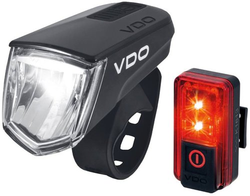 "Du suchst ein Leuchten-Set mit allem Pipapo? Dann bist du beim VDO Eco Light M60 & Eco Light Red Plus Fahrradlichter-Set von VDO an der richtigen Adresse! Mit 60 Lux und einer Leuchtweite von 70 m Leuchtweite im höchsten Modus geht sie auch mal mit auf Rennradtour, ist aber gleichermaßen für Pendler interessant. Im Eco-Modus läuft sie bis zu 12 Stunden und kann einfach über USB wieder aufgeladen werden. Das ECO LIGHT RED PLUS besitzt eine gute Sichtbarkeit von 500 m und hat sogar Verzögerungslicht, dass bei Bremsmanövern heller wird. Beide Leuchten haben eine Batteriestandsanzeige, sind StVZO zugelassen und werden mit der passende Befestigung geliefert, dank der sie werkzeugfrei an den Rahmen angebracht werden können. Die Features des VDO Eco Light M60 & Eco Light Red Plus Leuchtenset im Überblick:Standard-Modus mit 60 Lux: Zwei weitere Modi mit 30 und 15 Lux - passend für jede Lichtsituation. Rücklicht mit Bremsfunktion: Wirst du abrupt langsamer, wird das Licht heller. Wiederaufladbar: Der integrierte Akku kann einfach über USB geladen werden und beide Leuchten haben eine Batteriestandsanzeige. Inklusive Befestigung: Die elastischen und rutschfesten Silikonbänder können ohne Werkzeug befestigt werden. StVZO-Zulassung: Damit bist du im Straßenverkehr rechtssicher unterwegs. " Eco Light M60 & Eco Light Red Plus Beleuchtungsset, VDO