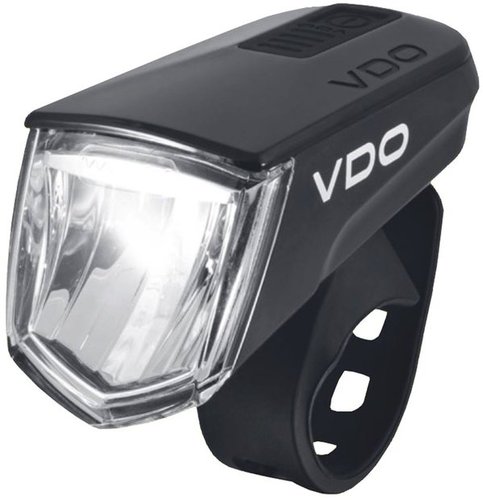 Wenn es dunkel wird auf den Straßen, ist die Zeit des Eco Light M60 Frontlichts von VDO gekommen. Mit seiner maximalen Leuchtstärke von 60 Lux und einer Leuchtweite von ca. 70 m bringt es ganz schön viel Licht auf den Weg vor dir - und das bis zu 3 Stunden lang. Willst du den Akku schonen oder ist es noch nicht ganz so dunkel, kannst du auch einen der zwei weiteren Leuchtmodi wählen (Mid: 30 Lux, Eco: 15 Lux). Im Eco-Modus hält die Leuchte 12 Stunden, bis der Akku wieder aufgeladen werden muss und dank einer Batteriestandsanzeige erkennst du frühzeitig, wann es wieder Zeit dafür ist. Natürlich ist das Eco Light M60 Frontlicht StVZO-zugelassen und kommt mit einer werkzeugfrei montierbaren Halterung. Die Features zusammengefasst:Drei Leuchtmodi: Standard (60 Lux), Mid (30 Lux) und Eco (15 Lux). Die maximale Leuchtweite beträgt 70 m). Per USB ladbar: Dank des verbauten Akkus ist das Eco Light M60 immer wieder aufladbar. Batteriestandsanzeige: So hast du den aktuellen Akkuladestand immer im Blick! Werkzeugfreie Montage: Das breite Silikonband lässt sich jederzeit lösen und sitzt sehr rutschfest. " Eco Light M60 Frontlicht, VDO