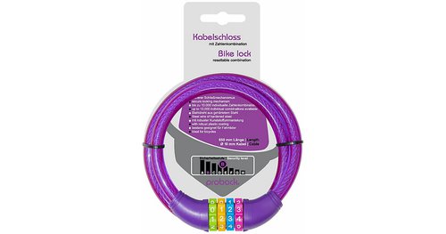 "Dies praktische Fahrradschloss bietet zuverlässigen Diebstahlschutz. Der vierstellige Code funktioniert mit Zahlen von 1-9, sodass Sie zum Beispiel das Geburtsjahr des Kindes einstellen können. Erstellt aus bis zu 10.000 individuellen Kombinationen Euren eigenen Code. Das Schloss besteht aus extra robustem und gehärtetem Stahldraht. Die Kunststoffummantelung beugt Lackschäden am Fahrrad-Rahmen vor. Bestens geeignet für Kinderfahrräder, Laufräder, Kinderwagen und allen anderen Kinderfahrzeugen. TECHNISCHE DETAILS: * Kabellänge: 65 cm * Kabeldurchmesser: 10 mm * Individuelle Zahlenkombination * Präzise Verarbeitung * Sehr stabil, durch gehärteten Stahldraht * Farbenfrohes Design * Eingestanzte Zahlen (kein bloßer Druck) Einstellen eines eigenen Zahlencodes: 1. Der voreingestellte Code ist ""0000"". 2. Öffne das Schloss. 3. Drehe das kleine geriffelte Rädchen (Knauf) mit dem Aufdruck ""Set"" um 90 Grad nach rechts. 4. Stelle Deinen gewünschten Code ein. 5. Drehe das Rädchen um 90 Grad zurück nach links in die Ausgangsposition. 6. Der eigene Code wurde nun eingestellt. Weitere Hinweise BUNT & KINDGERECHT: Farbenfrohes und elegantes Kinder Drahtschloss. Keine kritischen Weichmacher (Phthalat). NUR DAS BESTE: Hochwertiges Fahrrad Schloss aus zweifach gehärtetem Stahldraht und robuster Kunststoffummantelung. SICHERHEIT: Sicherheitsschloss mit sicherem Schließmechanismus, bis zu 10.000 individuelle Zahlenkombinationen möglich. PASSGENAU: Dieses Fahrradschloß ist bestens geeignet für Kinderfahrzeuge wie Kinderfahrräder und Laufräder. Kabeldurchmesser 10 mm, Kabellänge 65 cm. EINSTELLUNG: Super einfache Einstellung des Fahrradschloss Zahlen-Codes in nur 3 Schritten!"
