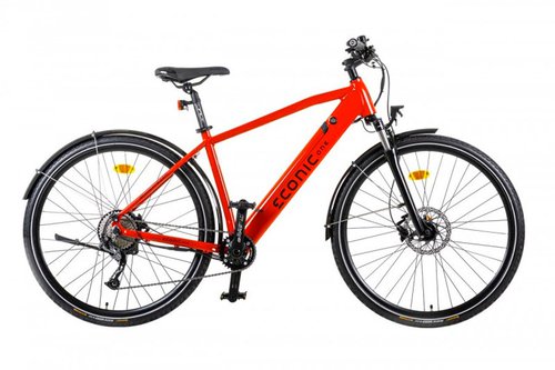 Die Econic One Urban E-Bike in Rot ist das perfekte Fahrrad für den städtischen Gebrauch. Der Rahmen ist aus Aluminium 6061 gefertigt und in drei Größen (M, L, XL) verfügbar, um sicherzustellen, dass es für jeden Fahrer die passende Größe gibt. Die Ergo-Griffe mit Schloss sorgen für einen bequemen und sicheren Halt während der Fahrt. Die Schaltung besteht aus einem Shimano Alivio Schaltwerk mit 1x9 Speed. Die hydraulischen Scheibenbremsen BR-MT200 bieten hervorragende Bremsleistung und die Continental Ride Tour Reifen mit einer Größe von 1,75x28 sorgen für eine zuverlässige Traktion auf der Straße.Das E-Bike verfügt über eine Vorderradaufhängung von 63 mm und einen City Active DDK Sattel für maximalen Komfort während der Fahrt. Die Kassette besteht aus 9 Gängen und hat ein Verhältnis von 11-42. Die Felgen sind aus Aluminium gefertigt und haben eine Größe von 28/29 Zoll mit doppelwandigen Ösen sowie Joytech Nabe und 36 Löchern.Der Motor ist ein Bafang mit einer Hinterradnabe mit einer 250 W Nenn- und 500 W Spitzenleistung. Die Batterie hat eine Kapazität von 36 V und 500 Wh Li-Ion und ist von Econic One in Bulgarien zusammengebaut worden. Der Controller ist von Bafang und ist im Rahmen montiert. Die maximale unterstützte Geschwindigkeit beträgt 25 km/h und die Reichweite hängt von der Unterstützungseinstellung ab und kann bis zu 142 km betragen. Das E-Bike bietet 5 Unterstützungsstufen und einen Gehmodus. Das Bafang C18 Farb-LCD-Anzeige gibt dem Fahrer alle notwendigen Informationen wie Geschwindigkeit, zurückgelegte Entfernung und Batteriezustand. Das Fahrrad ist mit einem 36 V, 2 A Batterieladegerät ausgestattet.