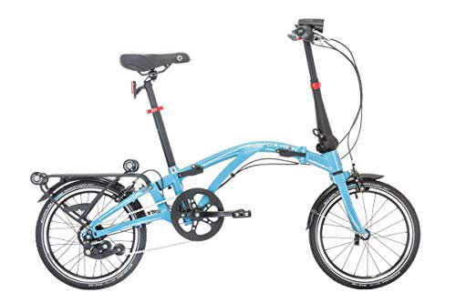 Das Dahon Faltrad (7sp), Modell Curl i7U, blau, L ist für Stadtfahrten vorgesehen.