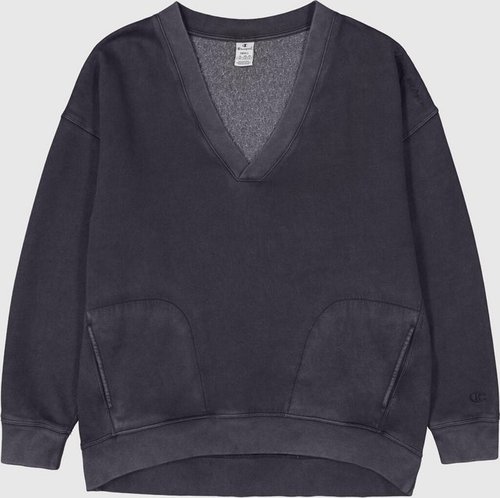 Damen-Sweatshirt aus weichem Fleece mit warmer, angerauter Innenseite, V-Ausschnitt und lockerer Passform, dessen Design durch eine Waschung in Vintage-Optik und 2 Fronttaschen abgerundet wird.