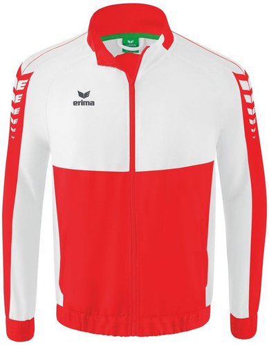Dein Team im Mittelpunkt! Mit der Präsentationsjacke bist du rund ums Training und im Alltag sportlich unterwegs. Leichtes, elastisches Funktionsmaterial, Elastische Bündchen an Ärmel und Saum, Stehkragen, Seitliche Reißverschlusstaschen, Ohne Innenfutter, ERIMA Schwingen-Design auf der Schulter