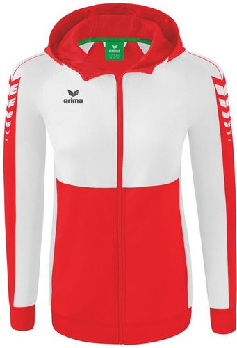 Funktionell und gemütlich! Die Kapuzenjacke macht deinen Look in jeder sportlichen Situation komplett. Weicher Materialmix, Cotton Touch für ein angenehmes Tragegefühl, Hoher Kragen mit Kapuze, Breite Rippbündchen an Ärmel und Saum, Seitliche Reißverschlusstaschen, ERIMA Schwingen-Design auf der Schulter, Taillierter Schnitt