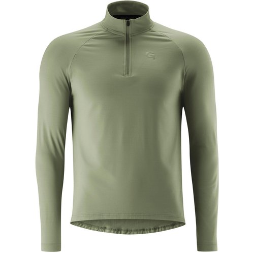 Warmes, langärmeliges Fahrradtrikot aus atmungsaktivem und elastischem Thermogewebe; ideal als Midlayer zwischen mehreren Schichten geeignet; körpernahe Passform; Stehkragen und halblanger Frontreißverschluss; seitliche Reißverschluss-Rückentasche; für Außentemperaturen von +5° bis +15°C geeignet; Fair Wear Foundation; Material 86% Polyester, 14% Elastan.