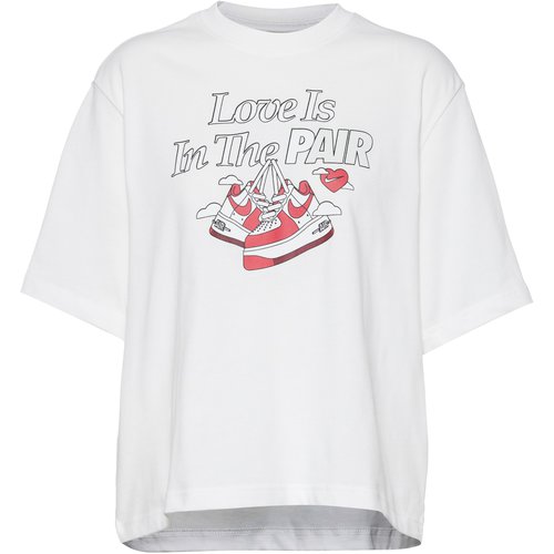 Loose Fit T-Shirt mit Rundhalsausschnitt und großem Statement-Print auf der Vorderseite; Material 100% Baumwolle.