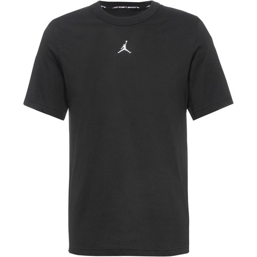 Funktionsshirt mit kurzen Ärmeln; feuchtigkeitsregulierend, schnelltrocknend und atmungsaktiv dank Dri-FIT-Technologie; Rundhalsausschnitt; jumpman-Logo auf der Front; kurze Seitentschlitze; Material 57% Baumwolle, 43% Polyester.