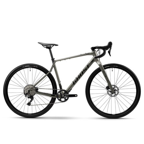 Super leicht, hoch professionell: Das ist das Ghost Asket CF Pro 29 Zoll Gravelbike. Das Bike mit Rahmen und Gabel aus gewichtsoptimiertem Carbon ist ein Partner, auf den man sich jederzeit hundert Prozent verlassen kann - auf schnellen Trailstrecken, langen Touren auf Schotter oder ausgedehnten Ausflügen. Ausgestattet mit unzähligen Aufnahmen für Taschen, Schutzbleche und sonstiges Zubehör ist das Asket bestens auf lange Bikepacking-Touren vorbereitet. Im 12 Gang Antrieb stecken Schaltkomponenten der Shimano-Gruppe GRX, die speziell für die Anforderungen von Gravel Bikes entwickelt wurden. Optimiert für raues Gelände, besitzt das Schaltwerk einen Kettenstabilisator für ruhigeres Schalten und sichere Kettenführung und bietet durch die feine Abstufung immer die passende Übersetzung für jedes Streckenprofil. Auch die Bremse ist ideal auf das Einsatzgebiet abgestimmt und ermöglicht absolute Kontrolle auf gemischtem Terrain, präzise steuerbar durch strukturierten Bremsgriff mit rutschfester Oberfläche und blitzschneller Reaktion. Das Crossbike ist mit einem echten Gravel Allrounder bereift, dem Maxxis Rambler. Mit genügend Volumen für guten Komfort und dem passenden Profil für Speed und Kontrolle ist dieser Reifen die perfekte Verbindung zwischen Rad und Boden - bei nahezu allen Verhältnissen außer tiefem Schlamm. Angeschrägte Mittelstollen für sehr gutes Rollverhalten werden mit offenstehenden Seitenstollen kombiniert, die im Gelände sauberen Seitenhalt bieten. Wir empfehlen das Fahrrad Personen mit einer Körpergröße zwischen 170 und 185 cm. Alle Fahrräder werden zu mindestens 85 % vormontiert ausgeliefert. Es müssen Vorderrad, Pedale, Sattel und Lenker montiert werden. Technische Daten: Hersteller: Ghost Modell: Asket CF Pro Farbe: uni pearl light green/black Gänge: 12 Rahmengröße: 50 cm Laufradgröße: 29 Zoll Rahmen: Ghost Asket CF Carbon Diamantrahmen Gabel: Ghost Carbon Starrgabel Steuersatz: Acros Vorbau: Ghost, Durchmesser: 31,8 mm Lenker: Ghost Gravel Bar Rennlenker, Breite: 460 mm Griffe: Prologo Microtouch Schalthebel: Shimano GRX ST-RX610 Bremshebel: Shimano BL-RX610 Schaltwerk: Shimano GRX RD-RX822 12-fach Kurbelgarnitur: Shimano GRX FC-RX610 einfach, 40 Zähne Kassette: Shimano SLX CS-M7100 12-fach, 10-51 Zähne Kette: Shimano SLX CN-M7100 Innenlager: Shimano SM-BB75-41B Bremsen: Shimano BR-RX410 mit Bremsscheiben SM-RT70 160/160 mm hydraulische Scheibenbremsen Reifen: Maxxis Rambler Silk Shield 45-622 Felgen: Rodi Ready 23 Asy Naben: Shimano HB-RS470 12x100 mm vorne, FH-TC500-MS 12x142 mm hinten Speichen: DT Swiss 2.0 Pedale: FPD NW-91K Sattel: Prologo Dimension AGX Sattelstütze: GND 51, Durchmesser: 27,2 mm empfohlene Körpergröße: RH 50: 170 - 180 cm RH 55: 178 - 185 cm Überstandshöhe: 80 cm zulässiges Gesamtgewicht: 120 kg Lieferzustand: 85 % vormontiert. Lenker geradestellen, Vorderrad und Pedale montieren, Schaltung, Bremsen und Schrauben prüfen Lieferumfang: 1 Fahrrad, Zubehör (Reflektoren, Glocke, Betriebsanleitung)
