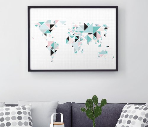 Die Triangle Map - designed von Tobias Goldschalt für Awesome Maps - ist eine abstrakte, design-forward Weltkarte. Die Karte ist in Pastellfarben in einem high-end Stempelverfahren gestaltet und hat ein edle-weiches, mattes Finish.