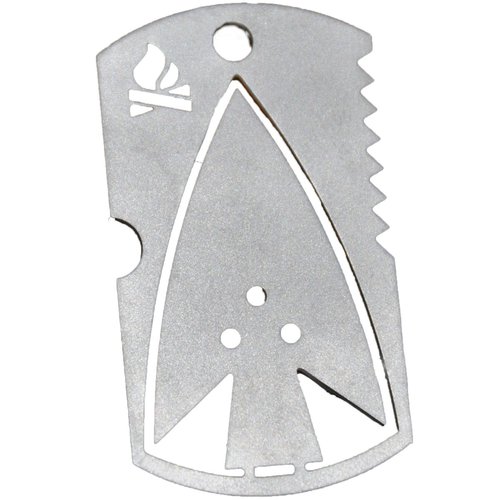 Hundemarke mit eingestanzter Pfeilspitze und Minisäge