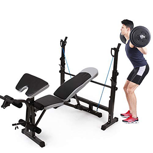 PROFESSION WEIGHT BENCH: Diese robuste 1,9-Zoll-Vierkantrohr-Olympia-Vielseitigkeits-Hantelbank wurde für den wirklich ernsthaften Lifter entwickelt. Zusätzliche Anhänge zu diesem Set sind die hochdichte Polsterung und der Crunch-Griff, mit denen Sie Bauchmuskeln für ein großartiges Kerntraining ausführen können.\nQUALITÄTSKONSTRUKTION: Robuster Hochleistungs-Mainframe-Schlauch für Langlebigkeit, feste Stützen sorgen für Komfort und Sicherheit beim Training. Die Hantelbank kann bis zu 500 kg tragen. Bequeme Schaumstoffabdeckungen Beinentwickler / Bequeme und langlebige Vinylsitze.\n8 EINSTELLBARE ZAHNRÄDER: Mehrere Absenk- / Flach- / Neigungs- / Militärpositionen für Vielseitigkeit in einer Hantelbank. Mit dem Dual-Action-Beinentwickler können Sie Ihre Beine trainieren und Ihre Quads, Kniesehnen, Gesäßmuskeln und Hüftbeuger stärken. Die verstellbaren Gewichtsgestelle bieten Platz für doppelte Aufgaben als aufrecht stehendes Bankdrücken und verstellbares Squat-Gestell.\nBITTE BEACHTEN SIE: Da die Breite des Langhantelhalters 41,3 "beträgt, muss die Länge zwischen den Kragen der Stange, die Sie mit dieser Bank verwenden möchten, größer als 41,3" sein. Es gibt viele Gewichtsstangen auf dem Markt. Um sicherzustellen, dass Ihre Verwendungserwartungen erfüllt werden, überprüfen Sie bitte die Abmessungen und Spezifikationen und wenden Sie sich an Ihren Hersteller der Gewichtsstange.\nVERTRAUEN KAUFEN: Wenn Zweifel oder Probleme bestehen. Bitte hinterlassen Sie Ihre Frage oder mailen Sie uns. Wir werden innerhalb von 24 Stunden antworten und unser Bestes geben, um Ihnen den besten Service zu bieten.
