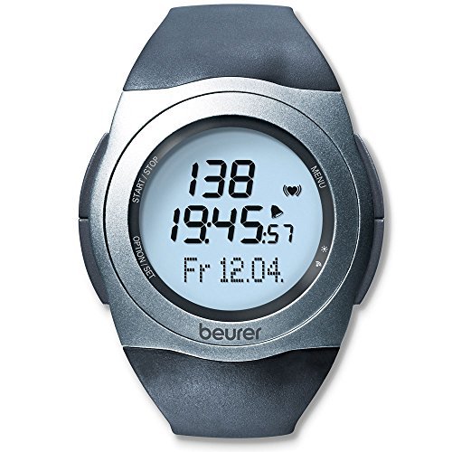 Sportliche Pulsuhr mit Brustgurt für eine EKG-genaue Pulsmessung, ideal für aktive Freizeitsportler und Fortgeschrittene\nEin individueller Trainingsbereich kann manuell eingestellt werden, ganz nach der eigenen Fitness und dem Trainingsziel\nDer Pulsmesser gibt die aktuelle und maximale Herzfrequenz an, mit Infos zu verbrannten Kalorien und Fettverbrennung\nDer Brustgurt hat einen elastischen Spanngurt für einen angenehmen Sitz und guten Tragekomfort\nDie Pulsuhr ist mit einer Displaybeleuchung, Datum- und Uhrzeitanzeige, Stoppuhr und Weckalarm ausgestattet und ist wasserdicht