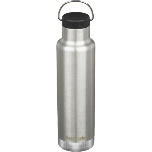 Vakuumisolierte Trinkflasche aus (beschichtetem) Edelstahl mit flachem, auslaufsicherem Kunststoff-Deckel