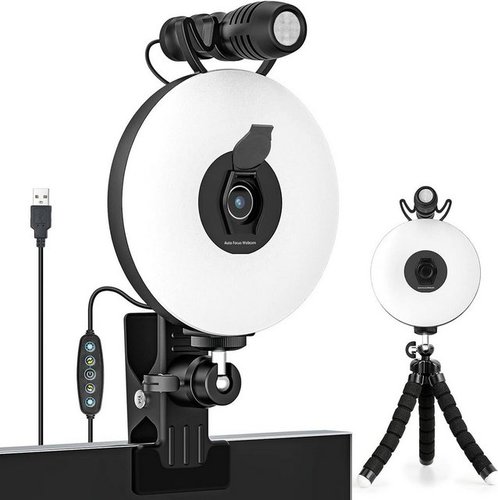 **Erleben Sie Klare Sicht und Perfekten Klang mit der CoMokin FHD-Webcam!** - **Hochauflösendes Ringlicht**: Unser integriertes Ringlicht bietet 6 Helligkeitsstufen für perfekte Beleuchtung und Hautverschönerung, ohne zu blenden. Ideal für schwach beleuchtete Umgebungen. - **1080P Webcam mit Autofokus**: Erfassen Sie gestochen scharfe Videos in 1920 x 1080p Auflösung mit unserem verbesserten Autofokus. Einstellbar in 360° horizontal und 90° vertikal für den perfekten Aufnahmewinkel. - **Klarer Ton, Keine Störungen**: Unser omnidirektionales Mikrofon nimmt aus jedem Winkel klar auf und reduziert Umgebungsgeräusche. Hochfrequenz-Störungsabschirmung isoliert Mobilfunkstörungen. - **Vielseitige Installation**: Mit einem praktischen Klemmendesign kann die Webcam mühelos an Computern oder anderen Oberflächen befestigt werden. Zusätzlich sind kleine Stative für eine flexible Platzierung auf Ihrem Schreibtisch enthalten. - **Universell Kompatibel**: Die CoMokin-Webcam ist Plug-and-Play-fähig und kompatibel mit Windows und anderen gängigen Betriebssystemen. Ideal für Videokonferenzen, Streaming, Online-Lernen und mehr. Entdecken Sie mit unserer Webcam die Welt der gestochen scharfen Videokommunikation und kristallklaren Töne.